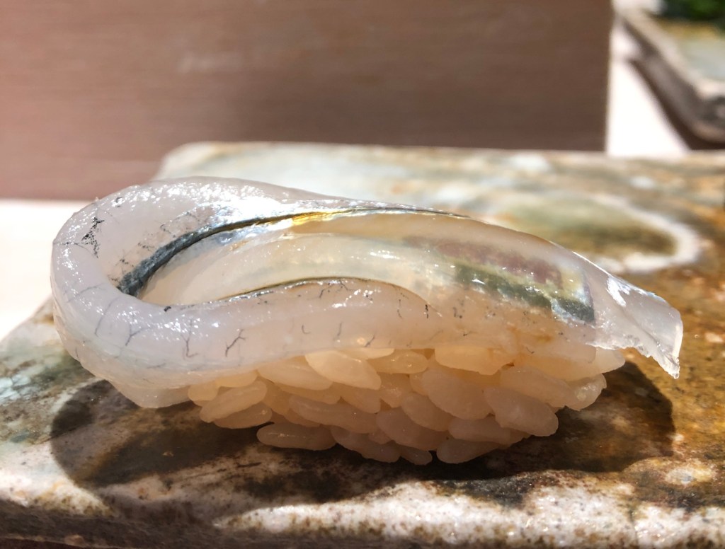 Or gizzard shad from Kumamoto city in Kyushu. Kohada is the piece de resistance in any sushi meal (and not the fatty cuts) in my opinion. Read more on the laborious process of getting this seasonal fish here.