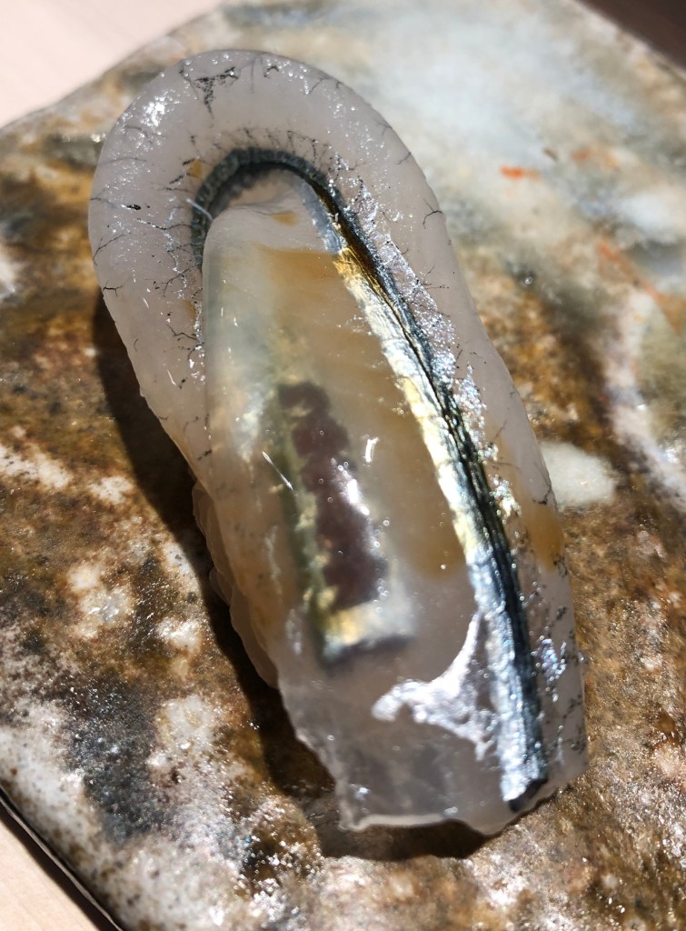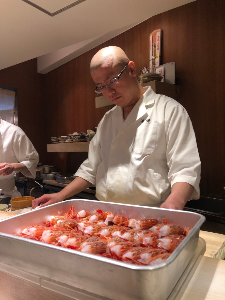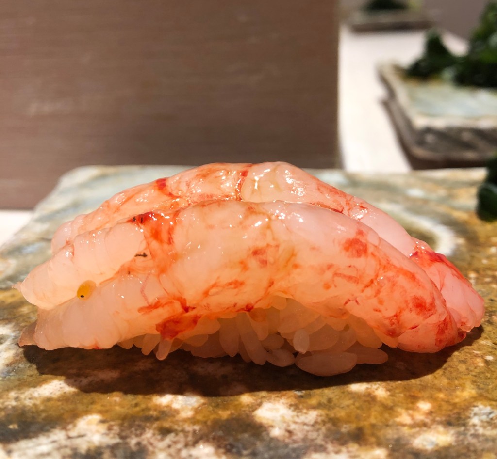 What an unexpected treat! it’s pretty rare to see gasu ebi or rustling sweet shrimp (named after the sound they make when caught in the net) outside of Kanazawa. In the original prefecture itself, they are known as “kurozako ebi“. So why did Chef bring this shrimp over to his Tokyo restaurant? Kanazawa was his grandfather’s hometown and where Chef cut his teeth at Aoi Sushi, are what I can safely assume. There are strong emotional ties to the city set in Ishikawa perfecture. The prices for these shrimps tend to go northwards as the catch is usually smaller and it’s not easy to keep them fresh. The effort was worth it as I got to have them raw, and taste the firm texture and sweetness, which induced a split-second flashback of my short stay in Kanazawa years ago.