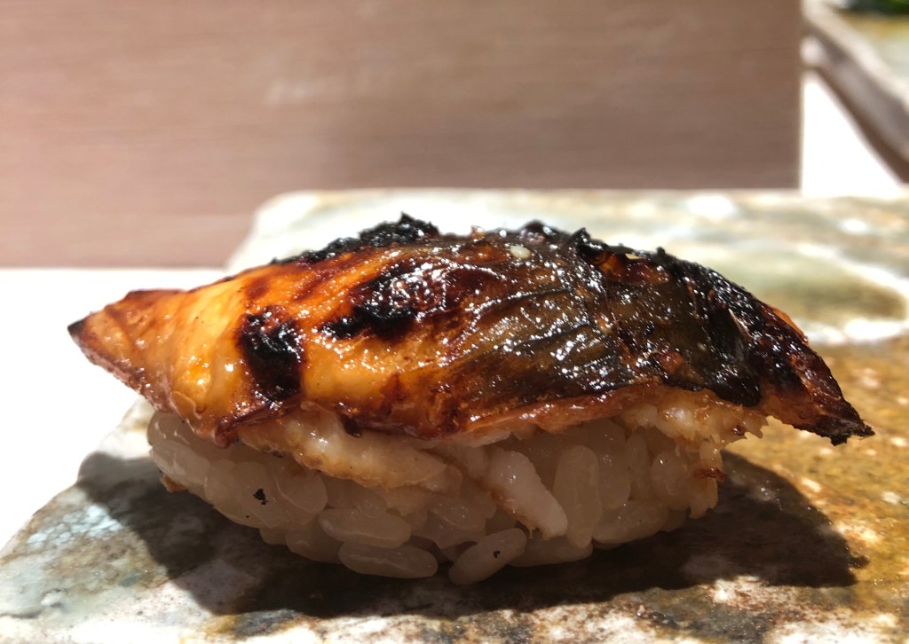 Nishin or red herring that was scored and seared, and resembled the shari bed which it laid upon. It had enough fat to go a long way. And it really looked like a piece of seared meat done rare at first glance.