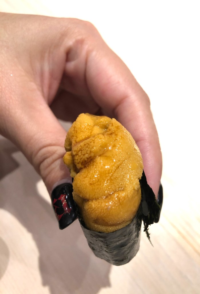 Whoever complained about too much uni? This one was piled on really high though, and I had a teeny bit of trouble stuffing the whole thing in my mouth. The chilled temperature of the sea urchin, its oh-so-sweet flavor and almost melt-in-the-mouth feeling were unparalleled. I used to dislike uni till my late 30’s. Imagine how many years I missed out on this delicacy! Don’t worry, I’ve been making up for it since then.