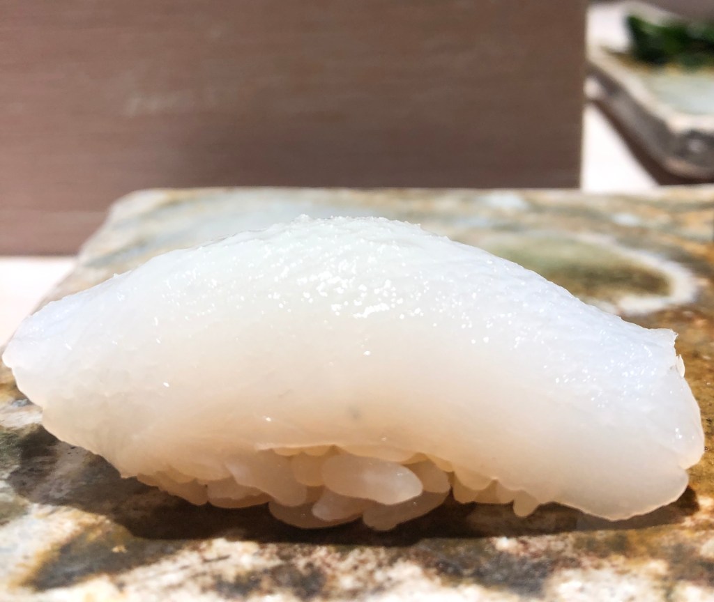 The white squid slice was from Kyushu, with a little sudachi lime and salt. The chew on this wasn’t tough or soft, rather in-between if that made sense. Every bite was a clean one that was punctuated with a little springy firmness.