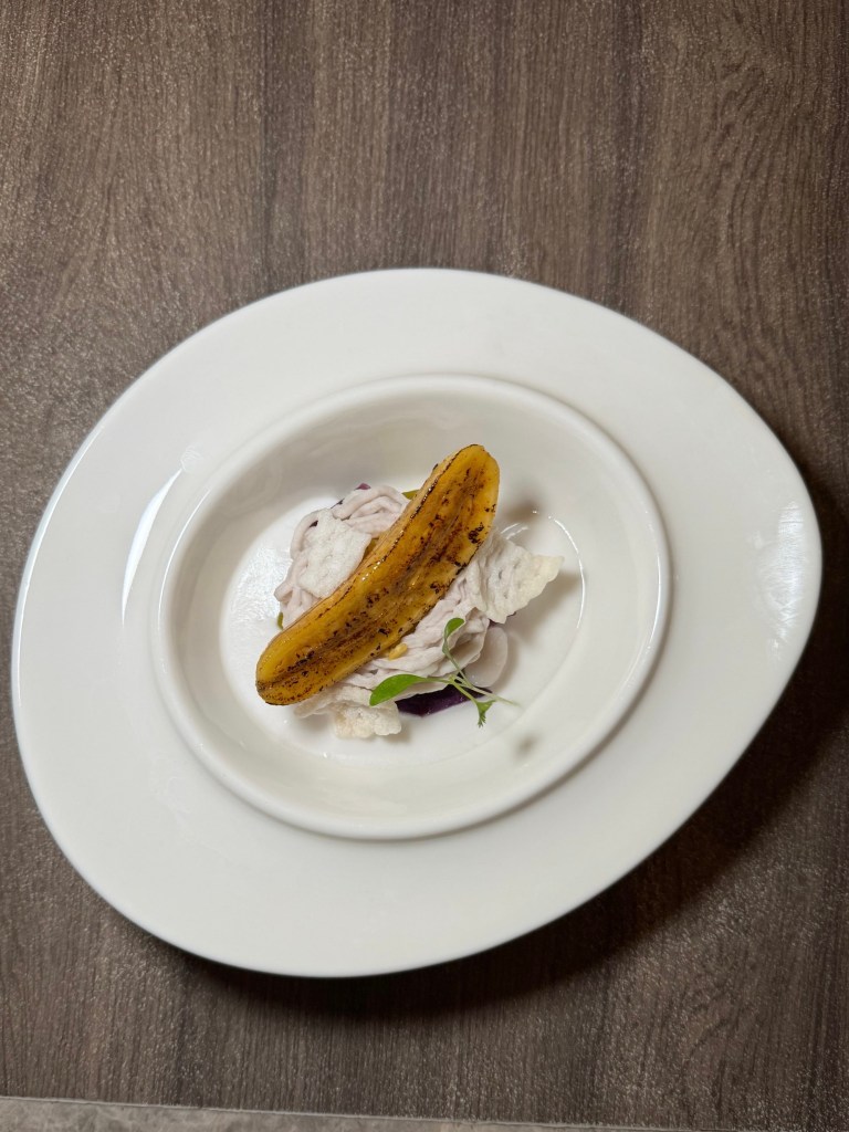 Pengat pisang was made and presented by a surprise pop-up, Nicolette Lee. The vegetable medley, sago and gula melaka topped with caramelized banana were best eaten together with coconut cream. I’m gonna be real here. I really do not like bananas so was I glad when my husband walked in at this moment and licked clean the plate! And then he got his own plate too, so he had this twice…HAH!