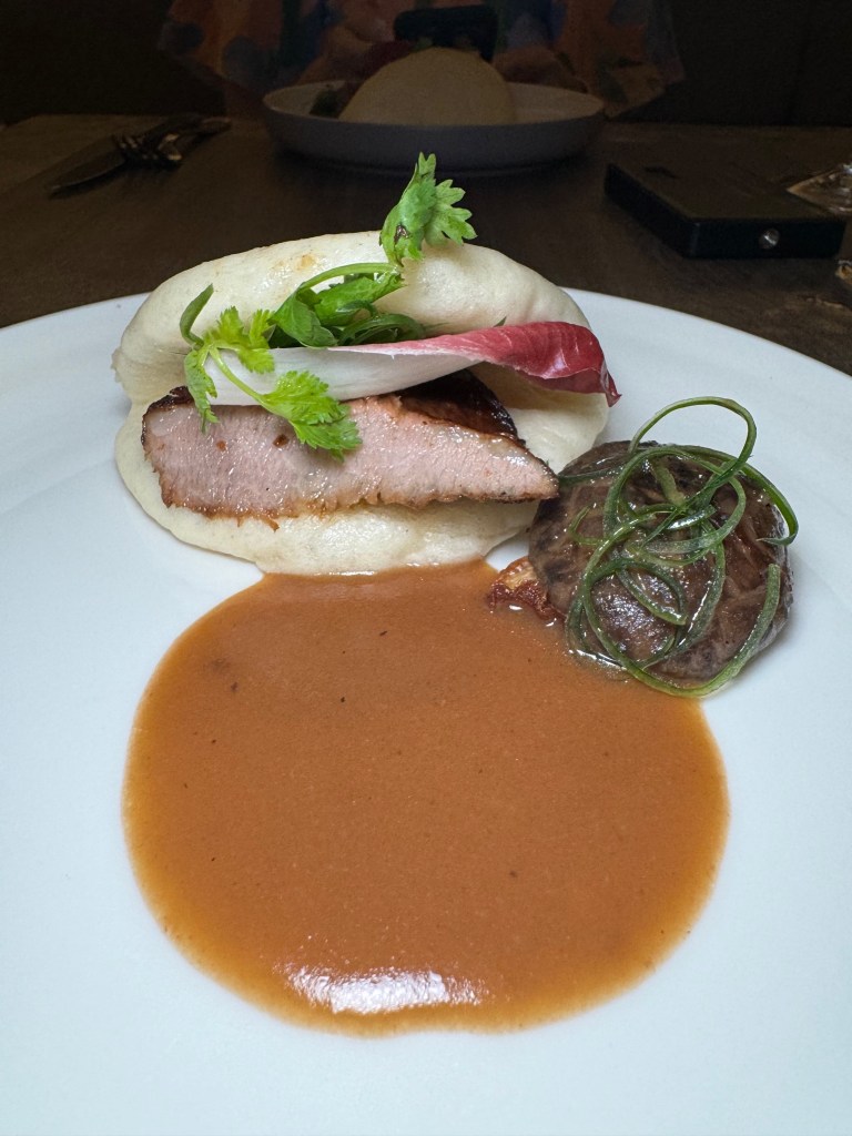 It was a weird second deciding on whether to pick up the bao with my hands, or cut it like a steak. I grabbed the knife. Then dragged a chunk of bao through the sauce. It was so tasty.