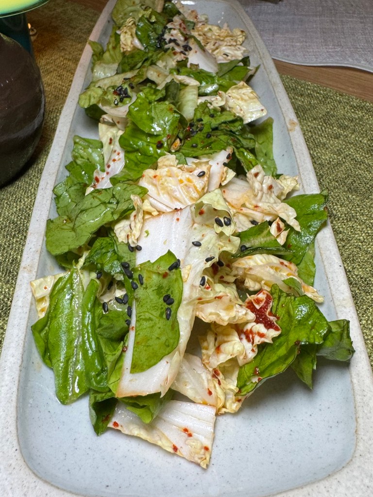 These meats were served with fresh salad and perilla oil dressing, celery jangajji in a tangy soy sauce blend that was so crunchy!, and geotjeori or fresh kimchi of napa cabbage.