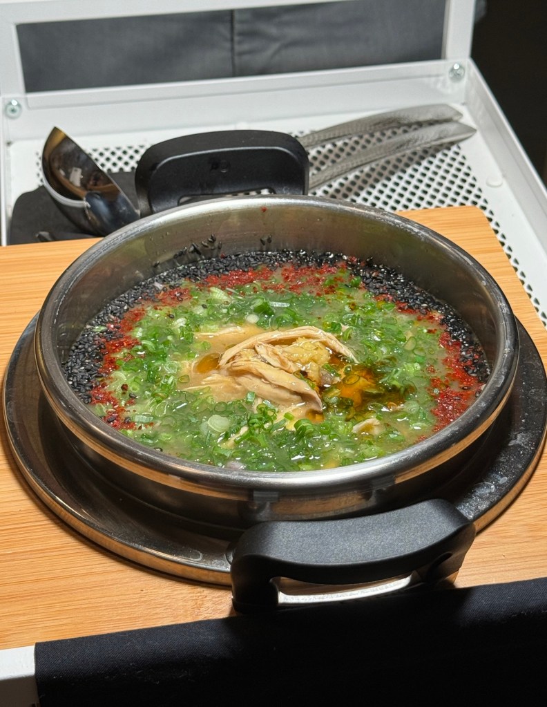 This was one luxurious porridge although it looks unassumingly so. Chef Aesil brewed organic french poulet, abalone, korean barley and glutinous rice for two hours together with six-year-old korean ginseng as an energy booster. That’s jeonbok – abalone & dak – porridge in samgyetang or ginseng chicken soup. The savory hug in a bowl was accompanied by kimchi and taro stems with a summer soup of spinach, seaweed and perilla leaves. These side dishes may change without notice, so enjoy them like it’s your last at every meal. And don’t be afraid to ask for seconds!